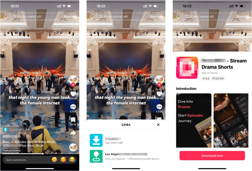 短劇觀眾天然具有高粘性,通過錨點(diǎn)將 TikTok 粉絲轉(zhuǎn)化為短劇應(yīng)用用戶,用戶點(diǎn)擊錨點(diǎn)直接跳轉(zhuǎn)應(yīng)用商店,降低獲客成本,極速轉(zhuǎn)化從“觀看”到“下載”的秒級(jí)路徑。