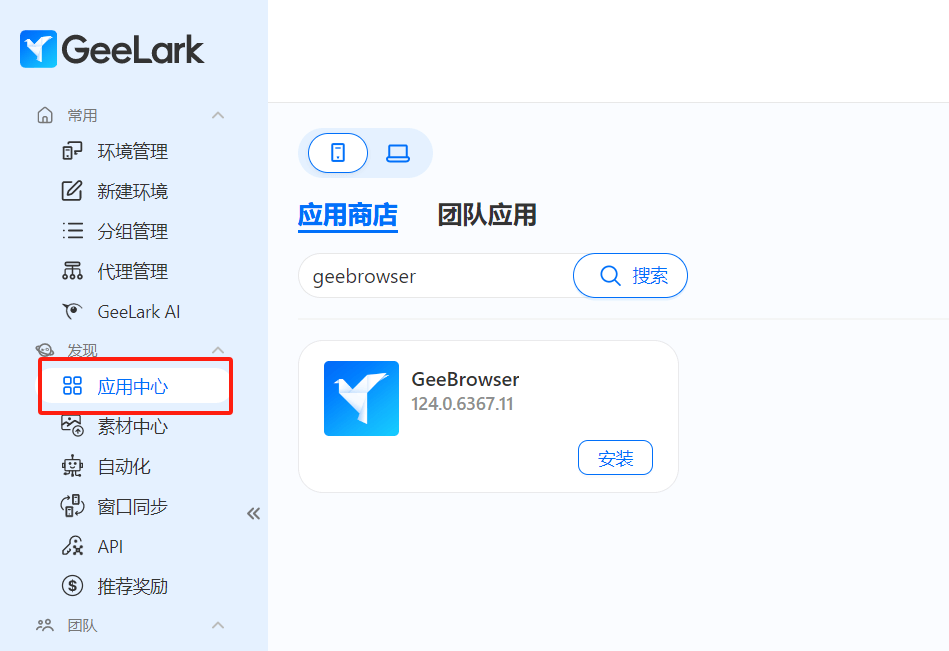 云手機(jī)環(huán)境最好安裝上GeeBrowser用于打開分享鏈接防止被關(guān)聯(lián)。 你可以在應(yīng)用中心-基礎(chǔ)應(yīng)用中搜索GeeBrowser進(jìn)行安裝。