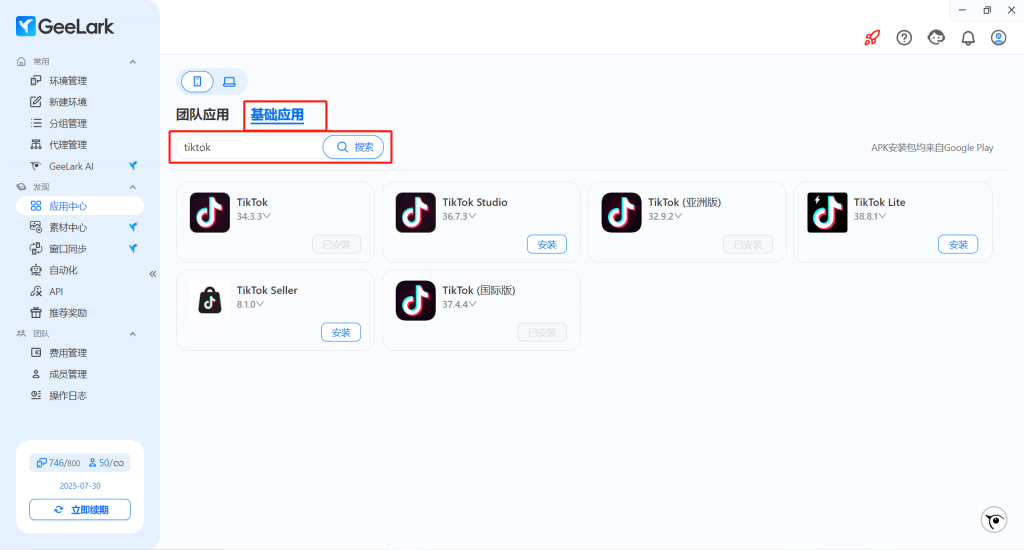 A:在應(yīng)用中心-基礎(chǔ)應(yīng)用中搜索需要的應(yīng)用,點擊安裝,那么開機之后團隊下的所有云手機環(huán)境會自動同步安裝該應(yīng)用。