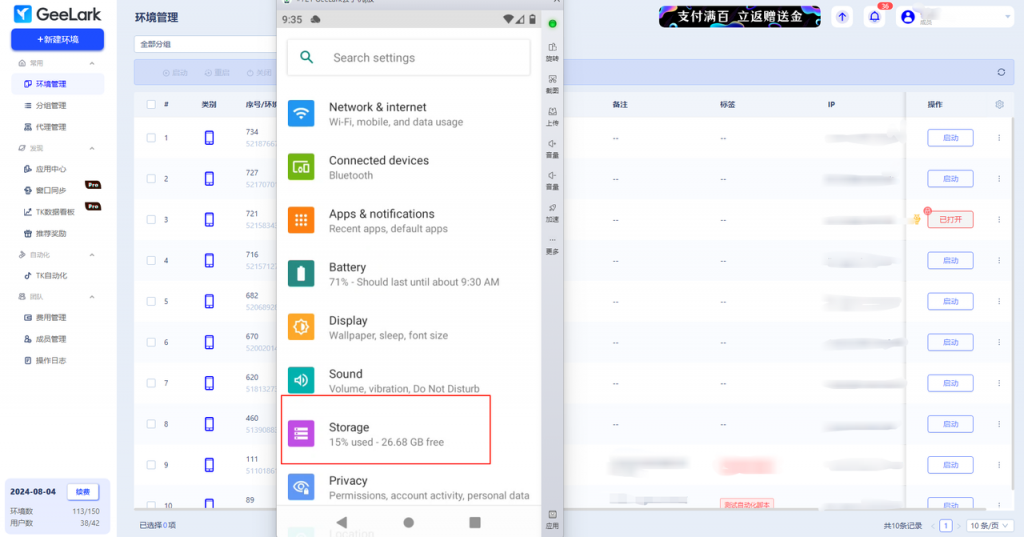 GeeLark始終堅持以用戶需求為導向,不斷優(yōu)化產品功能。此次自動清理SD卡數(shù)據(jù)的加入,正是基于對用戶反饋的深入洞察和精準分析。未來,GeeLark將繼續(xù)努力,為用戶帶來更多實用、貼心的功能更新。