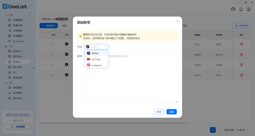 新賬號通常需要通過養(yǎng)號來提升權(quán)重,給賬號快速積累活躍度。而借助自動化功能,這一過程將變得更加高效便捷。