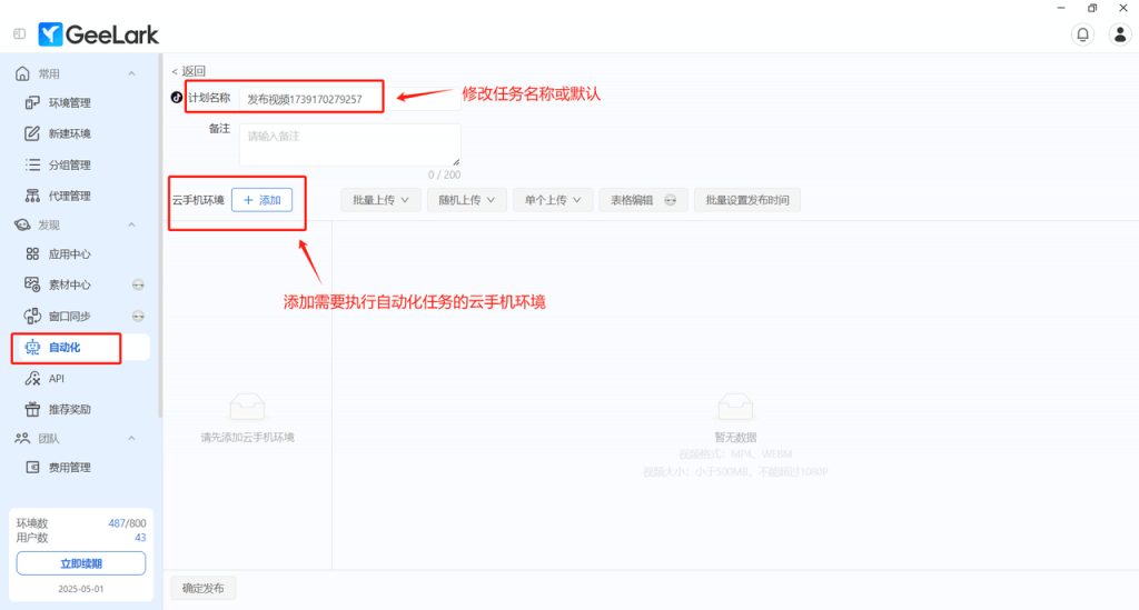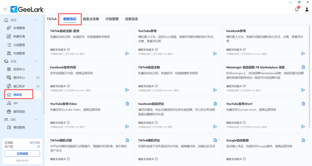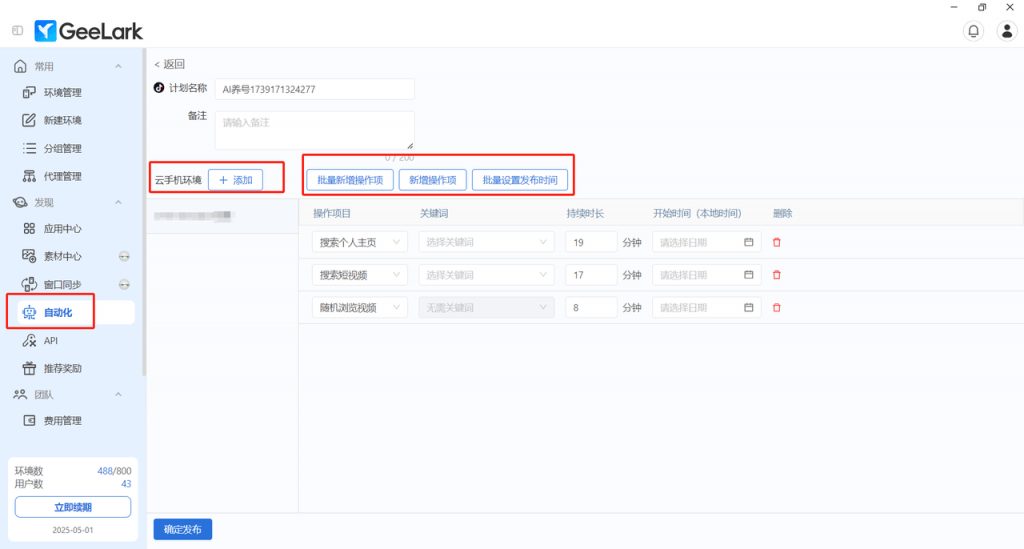 新賬號通常需要通過養(yǎng)號來提升權(quán)重,給賬號快速積累活躍度。而借助自動化功能,這一過程將變得更加高效便捷。以下給大家介紹GeeLark的自動化欄目。