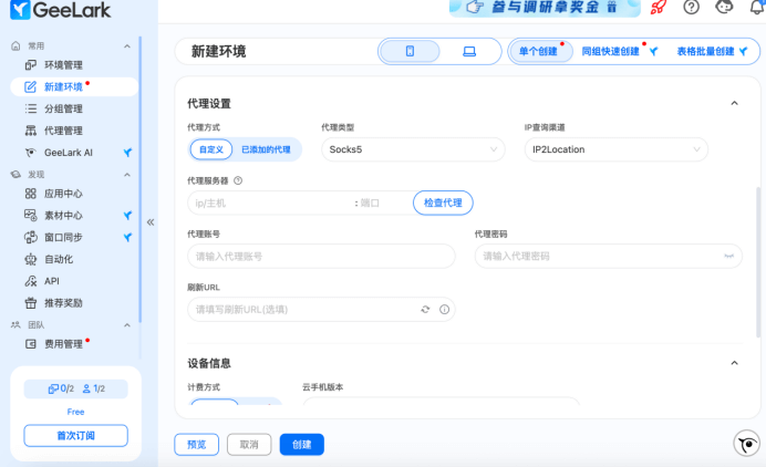 新注冊的 TikTok 賬號如同 “新生兒”,需要悉心照料。利用 GeeLark 云手機(jī)的多開功能,同時運行多個云手機(jī)環(huán)境,每個環(huán)境配置獨立的 IPFLY IP 地址和指紋。