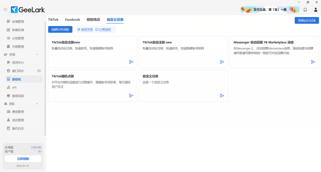 GeeLark繼續(xù)秉承以用戶體驗(yàn)為核心的理念,致力于通過(guò)持續(xù)創(chuàng)新和優(yōu)化來(lái)超越用戶期望。2024年12月的更新包括全面支持Android 13系統(tǒng)、推出RPA功能和Linux系統(tǒng)正式上線,為用戶帶來(lái)更加豐富的使用體驗(yàn)。?