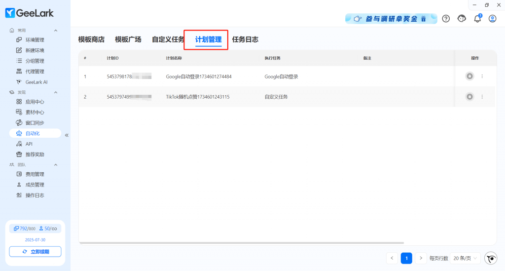 定時(shí)&循環(huán)任務(wù)設(shè)置后,你可以在【計(jì)劃管理】查看管理任務(wù)計(jì)劃,可以根據(jù)當(dāng)前賬號(hào)運(yùn)營(yíng)方式進(jìn)行修改,讓你的賬號(hào)運(yùn)營(yíng)策略更加符合業(yè)務(wù)現(xiàn)狀。