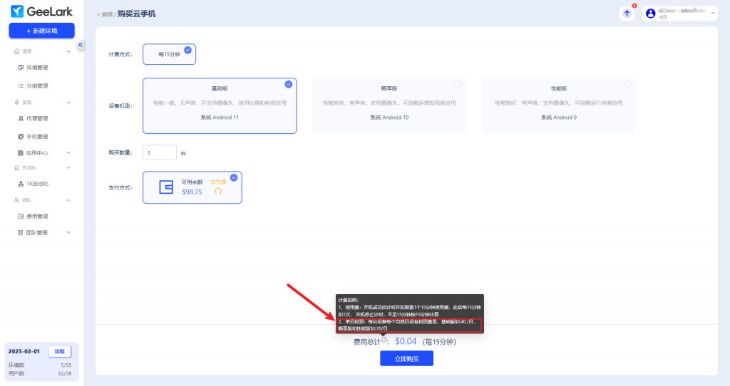 為了滿足廣大用戶的需求,現(xiàn)在GeeLark已支持微信支付,未來我們將會(huì)適配更多類型的支付方式,以滿足更多用戶的不同需求。