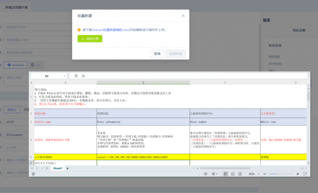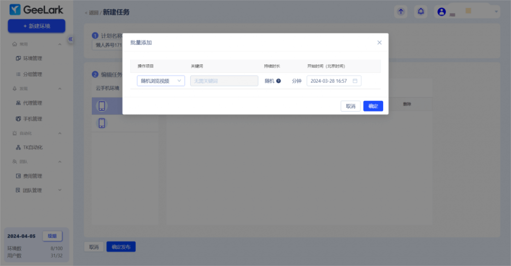 為了方便用戶批量創(chuàng)建云手機(jī)環(huán)境,GeeLark新增批量新建環(huán)境功能,如果你在不同的國家/地區(qū)有不同的本地化TikTok賬號正在運(yùn)營,就可以通過該功能將原有賬號批量導(dǎo)入到GeeLark中,進(jìn)行集中管理。