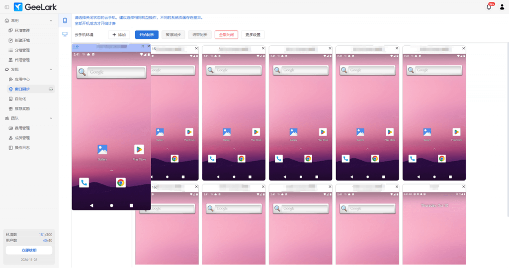 在最新的GeeLark版本中,我們針對(duì)多個(gè)云手機(jī)的自動(dòng)排列進(jìn)行了改進(jìn)?,F(xiàn)在,當(dāng)你需要同步多個(gè)云手機(jī)時(shí),所有窗口將按照上下左右對(duì)齊的規(guī)則自動(dòng)整齊排列。這種有序的排列方式避免了窗口堆疊,使你能夠更輕松地監(jiān)控和管理云手機(jī)狀態(tài),從而提升多任務(wù)處理的效率。