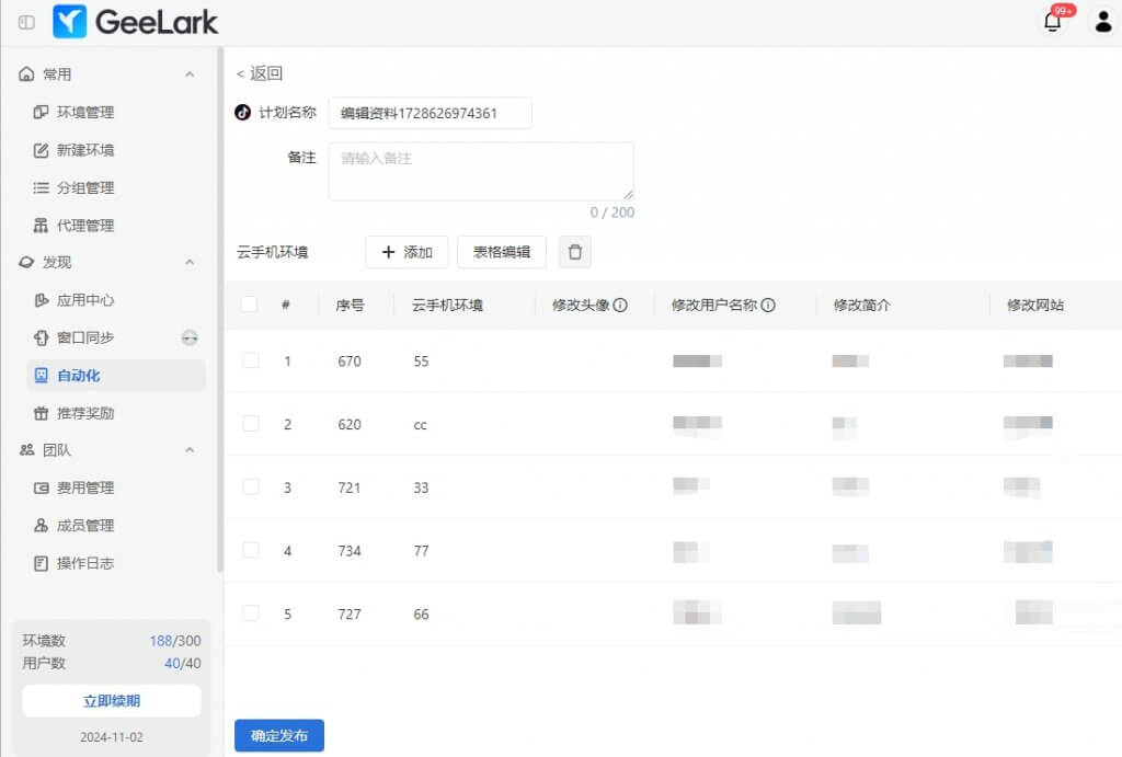 全新的TikTok自動(dòng)化增加了“編輯資料”功能,你可以批量修改頭像、昵稱、簡(jiǎn)介以及網(wǎng)址。當(dāng)你需要更新多個(gè)賬號(hào)資料時(shí),你還可以通過(guò)表格形式進(jìn)行批量編輯賬號(hào)資料,從而減少重復(fù)編輯的工作量,提升編輯資料的效率。