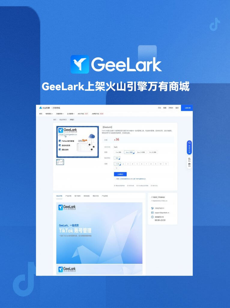 作為行業(yè)首個為跨境賣家打造的TikTok賬號一站式管理工具,GeeLark正式上架火山引擎萬有商城。這一戰(zhàn)略性合作也標志著GeeLark在推動品牌升級與智能化轉型方面的堅定決心。