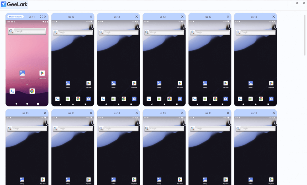 在最新版本中,GeeLark 窗口同步支持全屏/最小化/調(diào)節(jié)窗口大小。在窗口同步里開始同步后,點(diǎn)擊右上角即可進(jìn)入全屏模式,在屏幕內(nèi)容納更多云手機(jī)窗口,更加方便你多賬號(hào)運(yùn)營(yíng)。