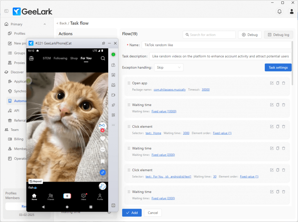1.創(chuàng)建1個(gè)或若干個(gè)云手機(jī)環(huán)境,然后在GeeLark云手機(jī)中安裝Facebook、TikTok App,并且登錄Facebook或TikTok賬號(hào)。