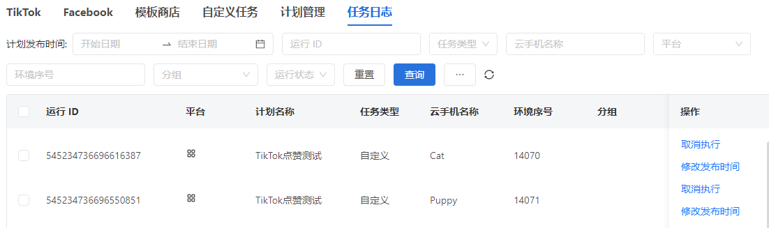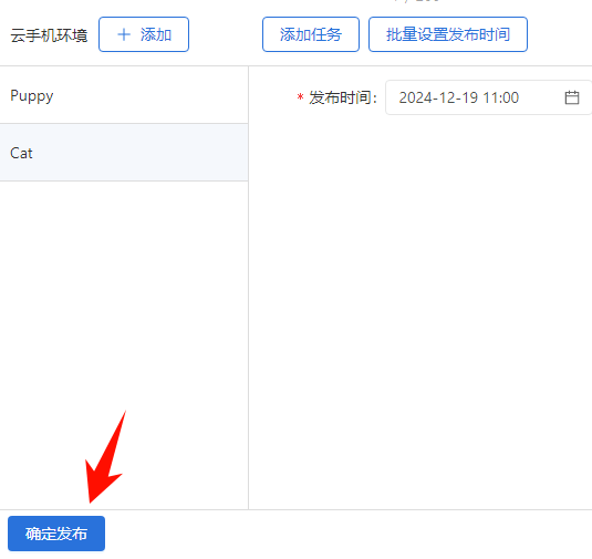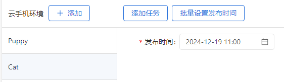 3-【批量設(shè)置發(fā)布時間】:為所選的云手機(jī)環(huán)境設(shè)置一個統(tǒng)一的執(zhí)行時間。
