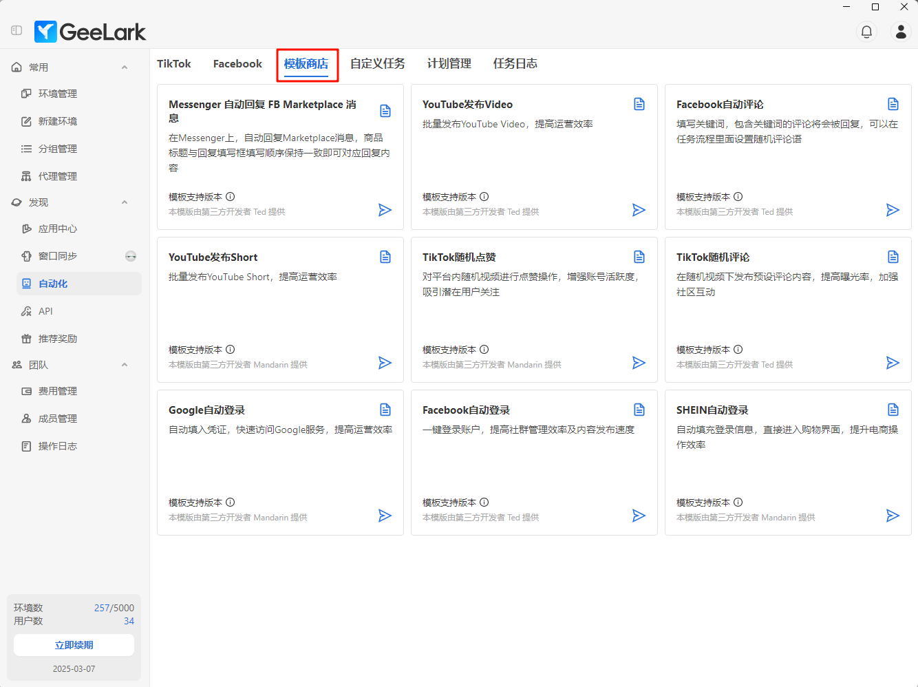 更多模版使用請參見:GeeLark RPA用戶手冊