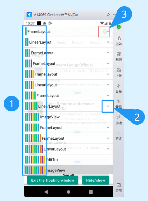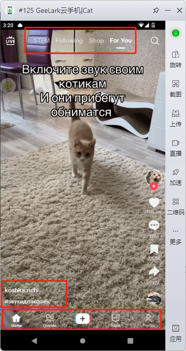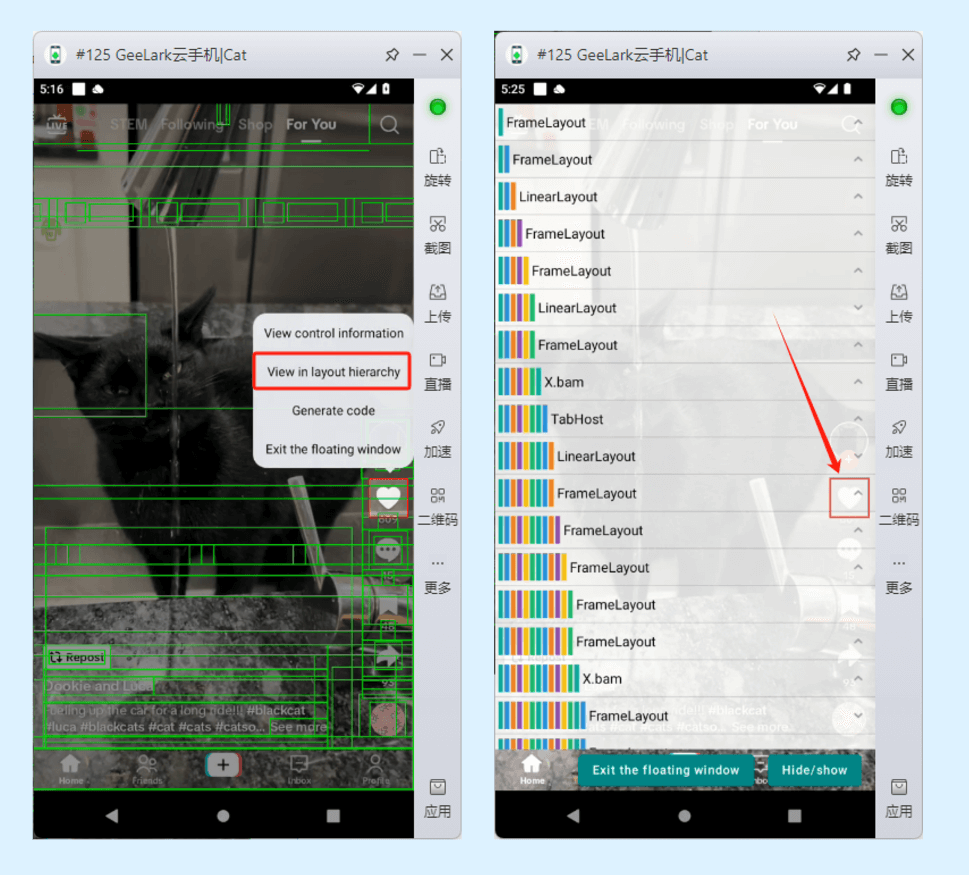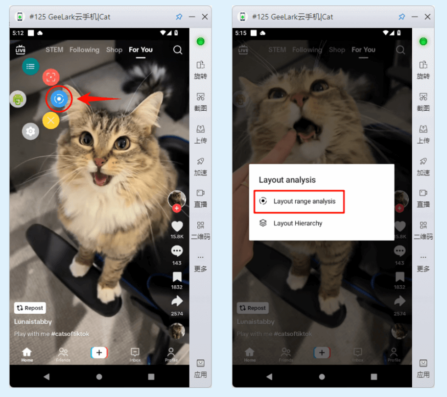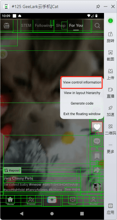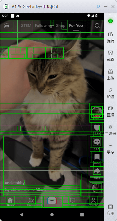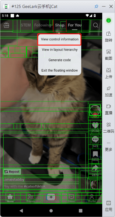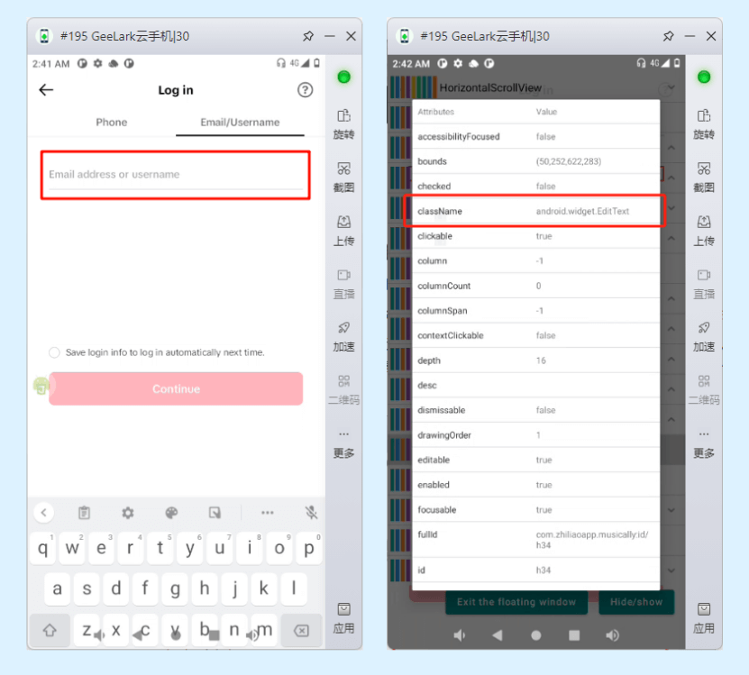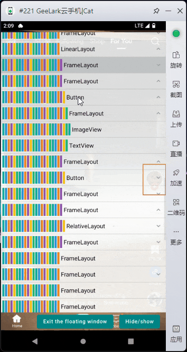 啟動云手機(jī),打開TikTok,并讓AutoX.js處于浮窗狀態(tài)。AutoX.js設(shè)置方法可以參考前文,這里就不再啰嗦了。