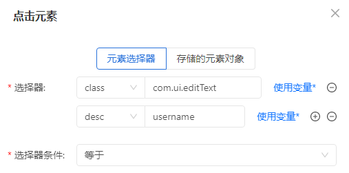 選擇器條件 | 等于:完全匹配屬性值,適合固定值的元素。 包含:匹配部分屬性值,適合動態(tài)變化的文本或描述。 |
