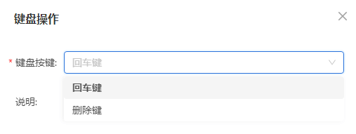 鍵盤按鍵 | 模擬按下鍵盤的“回車”鍵、“刪除鍵”。用于確認(rèn)操作或刪除文本框中的部分內(nèi)容。 |