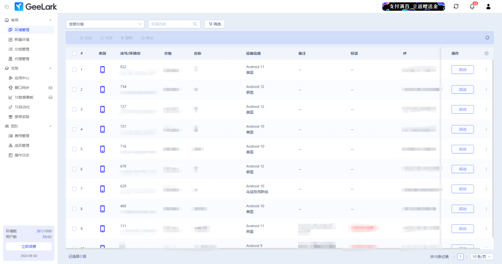 利用云手機:作為業(yè)界首個防關聯云手機解決方案,GeeLark 提供的云手機可讓你擁有多個環(huán)境,每個環(huán)境都像真正的智能手機一樣。這意味著你可以輕松管理多個 Instagram 帳戶,訪問所有功能,并且沒有被封禁的風險。