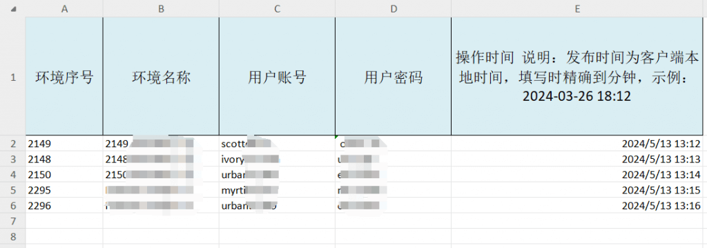 3. 下載表格后,本地編輯添加你的賬號信息,對應(yīng)填入相關(guān)賬號密碼,并填寫你要進(jìn)行登錄的時間。
