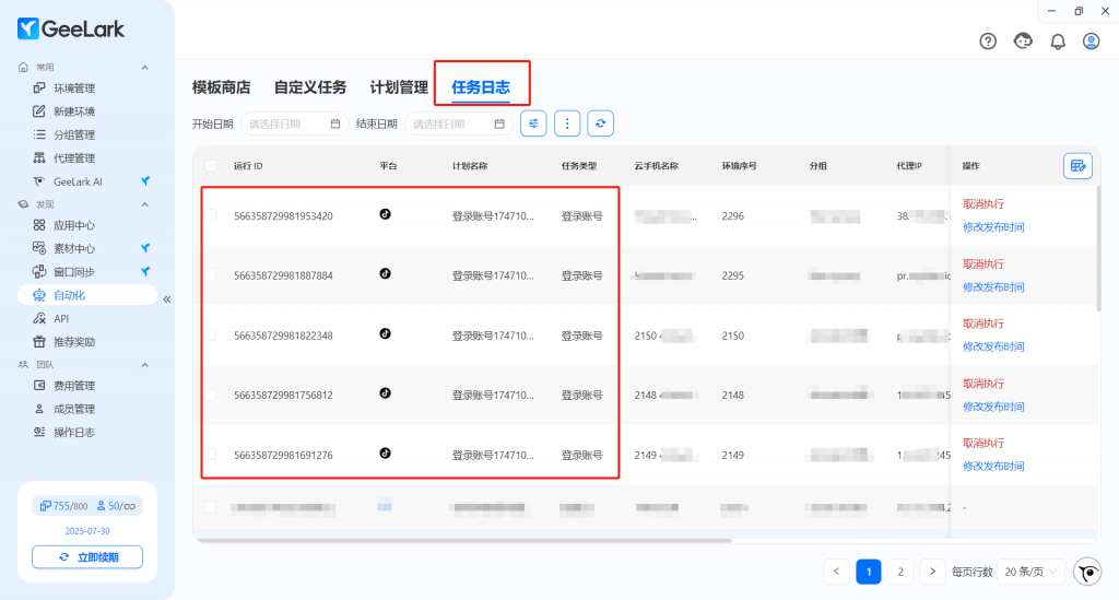 6. 在“任務(wù)日志”一欄,你可以查看每個賬號登錄的執(zhí)行情況,后續(xù)可進(jìn)行更多的自動化運(yùn)營任務(wù)。