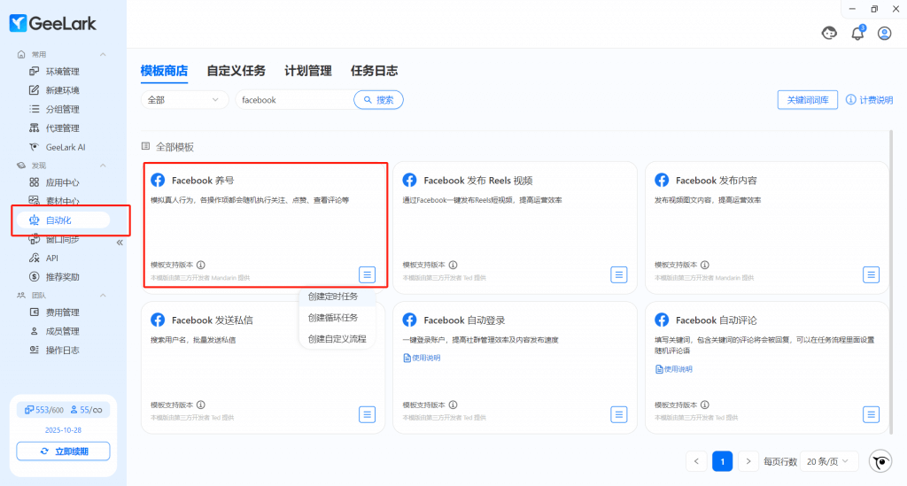 第一步:選擇 「Facebook 養(yǎng)號」模板