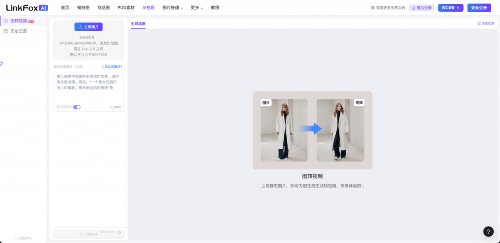 現(xiàn)在,LinkFox 還推出了全新的圖片轉(zhuǎn)視頻功能。只需上傳靜態(tài)圖片,系統(tǒng)便會利用 AI 自動生成動態(tài)圖片,幫助 TikTok 跨境賣家更高效地制作商品介紹視頻素材,節(jié)省拍攝時間和成本。
