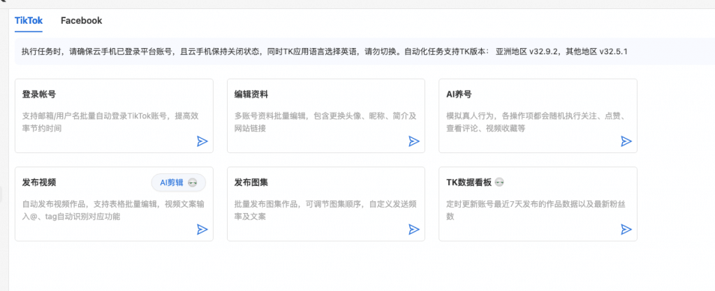 GeeLark 是一款 TikTok 賬號一站式管理工具,包含賬號管理、自動化任務(wù)(AI 剪輯、自動發(fā)視頻、自動發(fā)圖集、AI 養(yǎng)號)和團隊功能(分組授權(quán)、防止因員工離職而造成賬號資產(chǎn)損失)等功能,幫助跨境賣家實現(xiàn)高效運營。