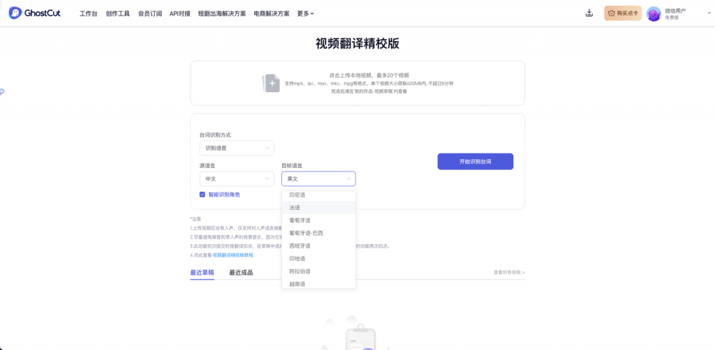 然而,現(xiàn)在你可以通過鬼手剪輯實現(xiàn)AI 視頻翻譯,快速對中文視頻素材進行精準識別,輕松擦除和替換中文字幕,實現(xiàn)一鍵文本翻譯。