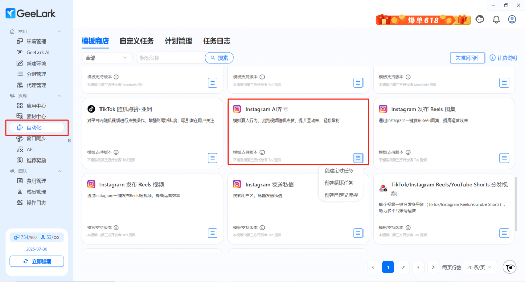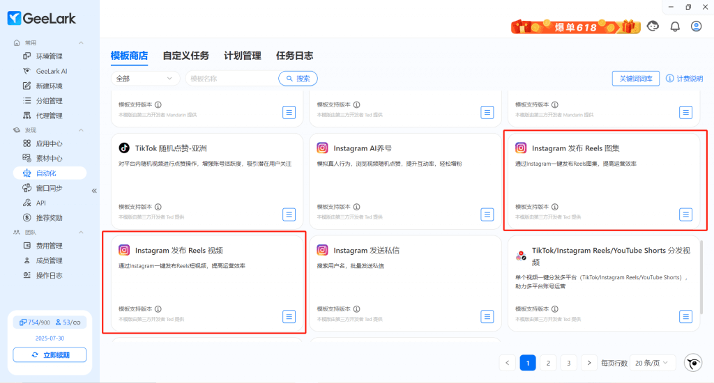 GeeLark 提供了 Reels 圖集/視頻發(fā)布自動化模板,合理運用AI自動化功能,也能極大提升賬號活躍度。