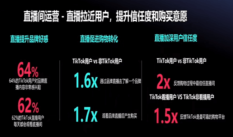 由于目前 TikTok 的商業(yè)環(huán)境和文化因素不同,直播賣貨的達(dá)人并不像國(guó)內(nèi)抖音那么成熟和發(fā)達(dá),并且在直播中購(gòu)買的用戶占比也很少。并且存在種族差異的現(xiàn)象,即:白人賣貨,黑人不買;黑人賣貨,白人不買;黃種人賣貨,黑人白人都不買。因此在直播時(shí),應(yīng)該考慮好受眾群體,搭建合適的直播間。