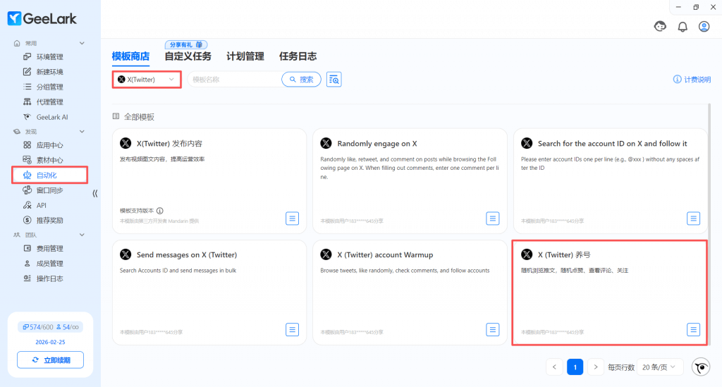第一步:選擇 X (Twitter)養(yǎng)號(hào)自動(dòng)化功能