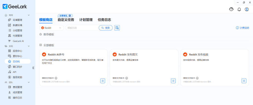在 GeeLark,你可以通過使用 Reddit 自動化相關(guān)模板,讓你能安全、高效、規(guī)模化地運營這個“流量領(lǐng)域”,從而真正實現(xiàn)“養(yǎng)號-創(chuàng)作-發(fā)布”一站式閉環(huán),最終驅(qū)動業(yè)務(wù)增長。