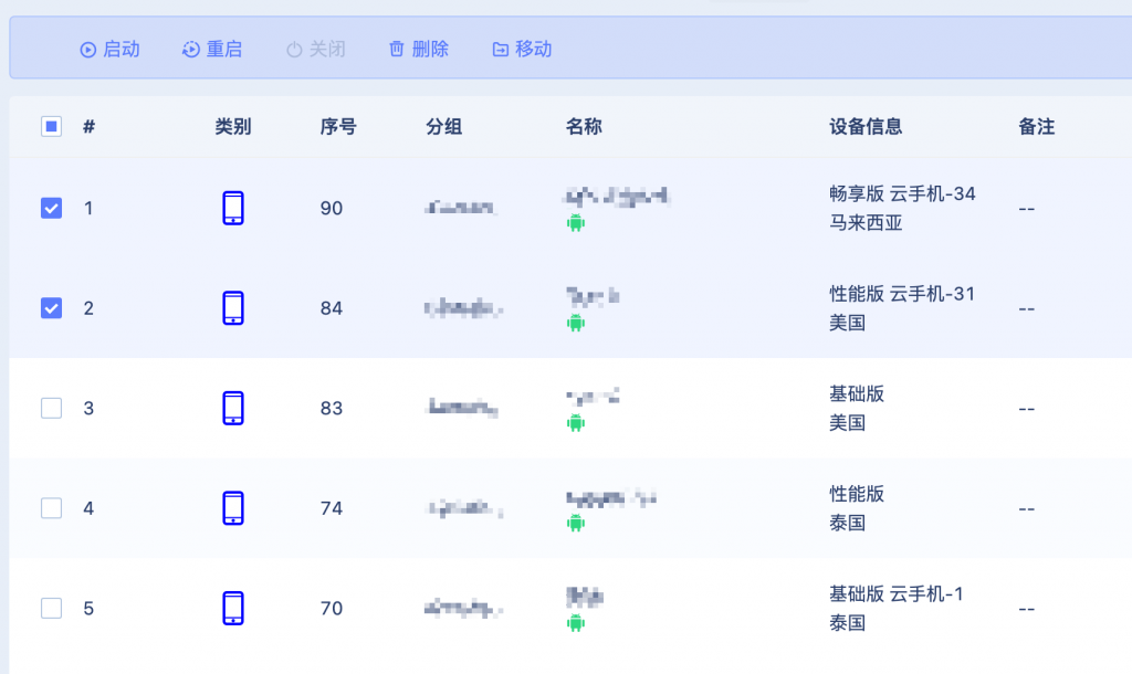現(xiàn)在,你可以在環(huán)境管理頁面,對云手機的環(huán)境進行批量重啟的操作。當你為團隊成員批量安裝應用后,你可以使用這個功能批量重啟環(huán)境,而不需要進入到每個環(huán)境中操作,節(jié)省操作時間。