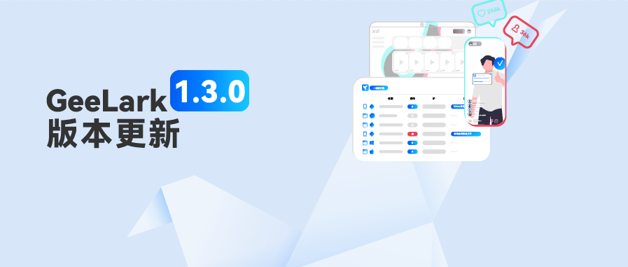 為了給用戶更好的使用體驗,我們推出GeeLark云手機1.3.0版本,涵蓋了快捷動態(tài)代理配置、推薦獎勵、視頻隨機上傳等多個功能,并且優(yōu)化了UI頁面樣式,一起來看看吧。
