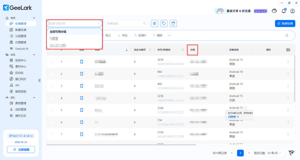 2. 如果分組管理正確,你可以點擊環(huán)境管理,檢查分組搜索框處是否篩選了某個分組。
