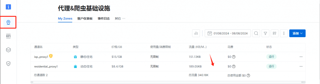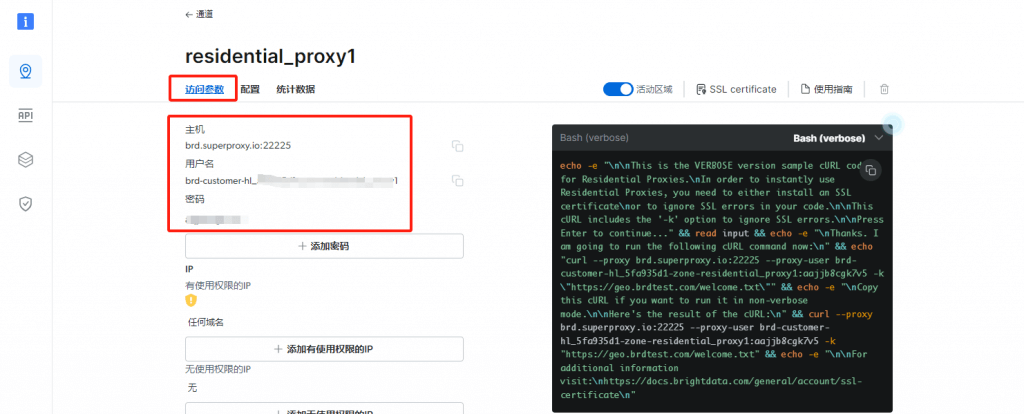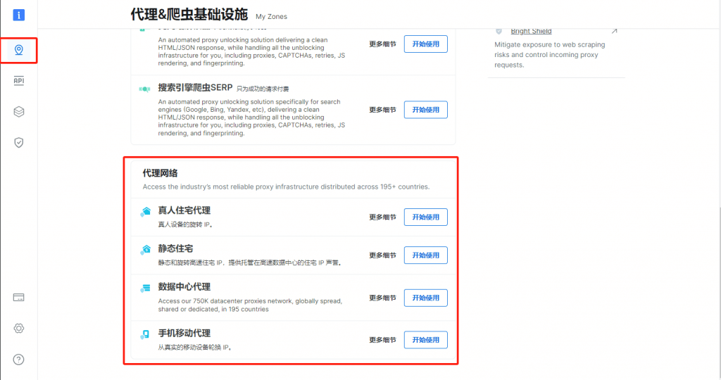 1.登錄Bright Data(亮數(shù)據(jù))后臺設(shè)置,選擇使用的代理類型,點(diǎn)擊開始使用。創(chuàng)建代理通道之后,點(diǎn)擊該通道進(jìn)入編輯獲取代理信息