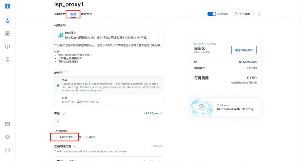 2.選擇配置,點(diǎn)擊“下載IP列表”,下載為TXT文件