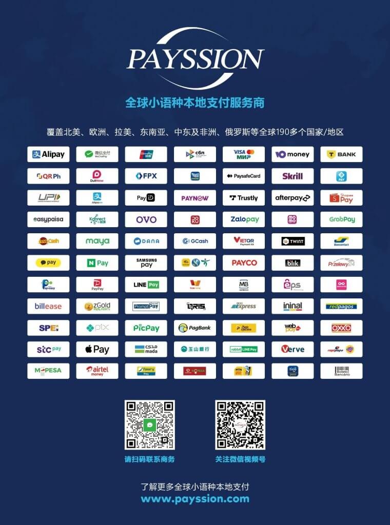 PAYSSION 成立于2013年1月15日,致力于為出海企業(yè)提供一站式全球本地支付解決方案,通過(guò) PAYSSION 一個(gè) API 可以快速接入全球300多種本地支付。