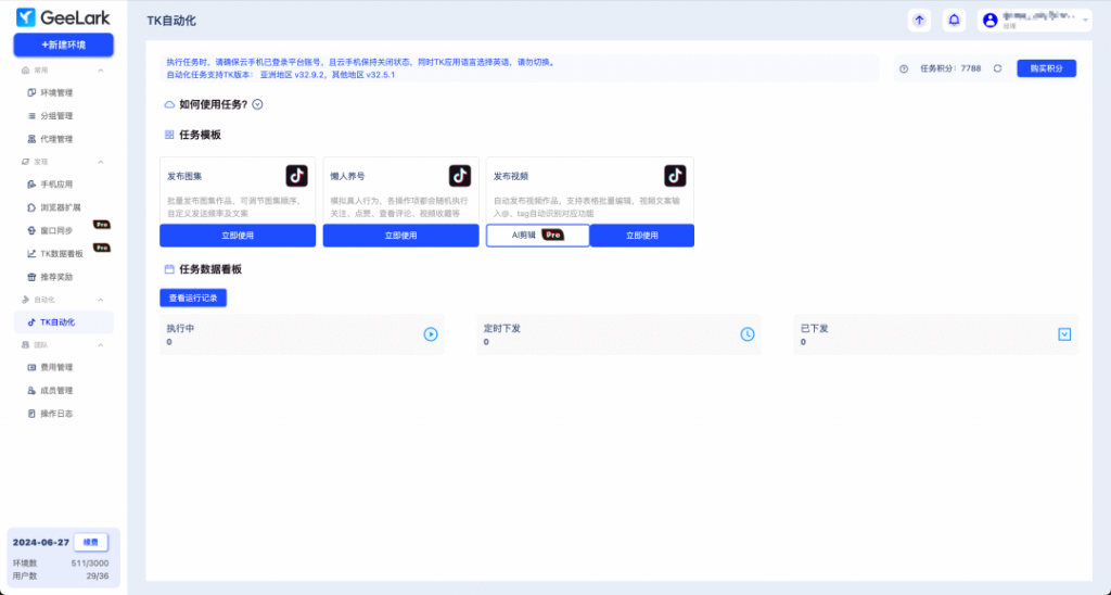 GeeLark的云手機(jī)技術(shù)則可以為外貿(mào)企業(yè)提供一個(gè)安全,穩(wěn)定的手機(jī)環(huán)境,為用戶管理TikTok賬號(hào)提供了極大的便利,GeeLark的自動(dòng)化功能簡(jiǎn)化了賬號(hào)管理流程,提高了運(yùn)營效率,其團(tuán)隊(duì)協(xié)作支持則進(jìn)一步促進(jìn)了業(yè)務(wù)的增長(zhǎng)。